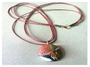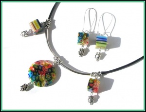 Стеклянные бусины, выполненные в технике миллефиори ("тысяча цветов"), кожаный шнур, металлофурнитура.