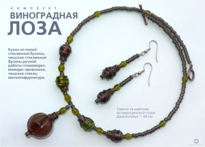 Комплект бижутерии «Виноградная лоза» (колье + серьги). Кулон из полой стеклянной бусины виноградного цвета (диаметр около 20 мм.), бусины-«лэмпворк», мемори-проволока, металлофурнитура. Серьги на швензах из медицинской стали.