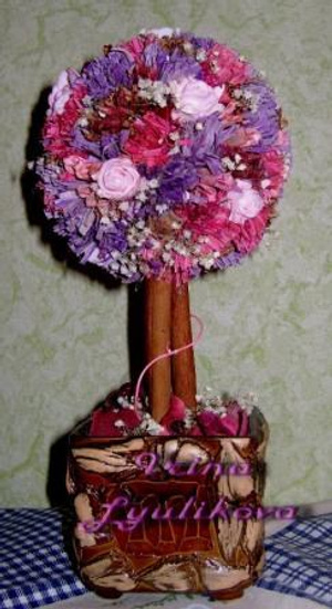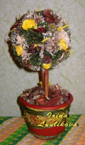 Флористическое европейское дерево - арт-объект, стилизованный под мини-дерево, который изготавливается из высушенных растительных материалов с учетом пожеланий заказчика