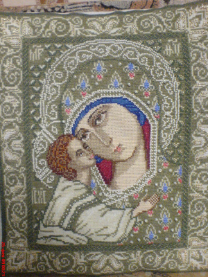 продаю две иконы вышитые крестом (одна с элементами отделки бисером) Игорьевская Божья матерь размер 27*34см. Может быть любая вышивка на заказ: от открытки до картины любого размера по договорной цене.