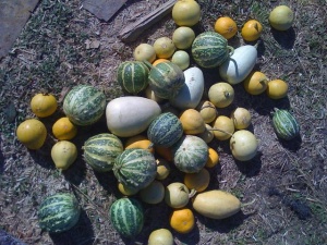 Есть белого цвета грушевидной формы, зеленые полосатые как маленькие арбузики, гладкие и с бородавками, желтые.