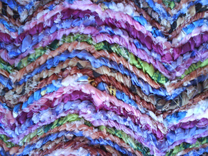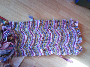 "Коврик можно сшить. Ворс настрочен на плотную ткань.Пряжа-распущенные свитера."