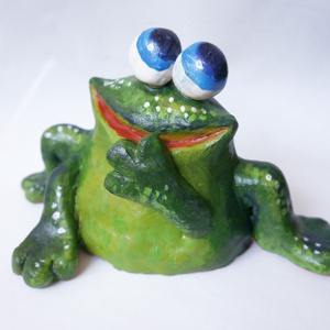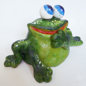 Вот такая веселая огородная жаба была слеплена в подарок для человека, их коллеционирующего...
