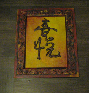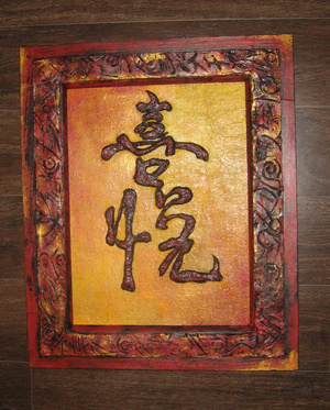 Картина в китайском стиле. Объемный узор на раме. объемный иероглиф.