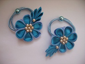 Украшения по технике "канзаши": резинки, заколки, зажимы, ободки, броши. Очень много изделий для взрослых и маленьких!