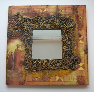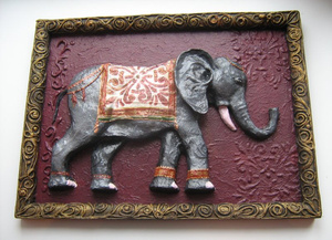 3. Картину с Объемным слоном и обьемными орнаментами, рама сделана вручную.