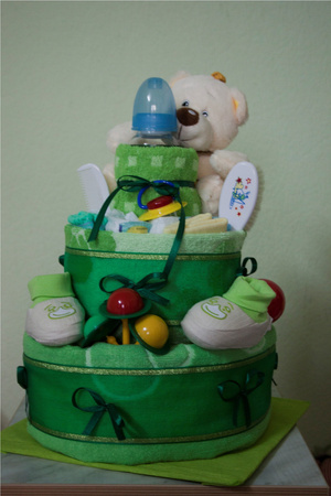 Подарок из кучи нужных и приятных вещиц в виде тортика для будещей мамы и новорожденного малыша просто супер! На себе его испытала