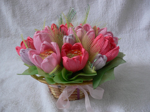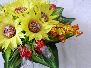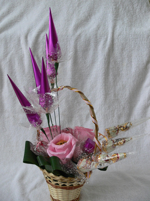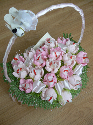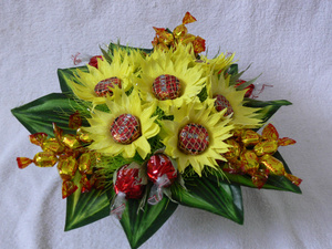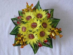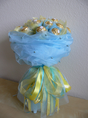 и букет, и в то же время с конфетами, еще и с творческим подходом, с частичкой своей души и фантазии ! просто супер!!