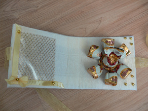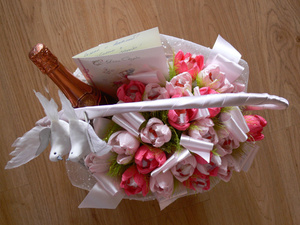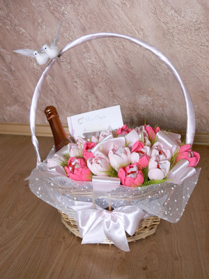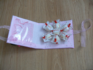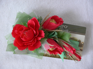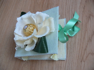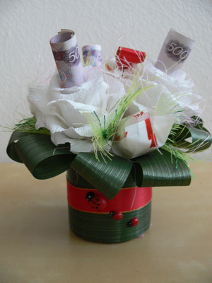 Все тот же букетик, но предусматривает место для ценного подарочка.