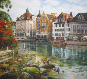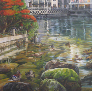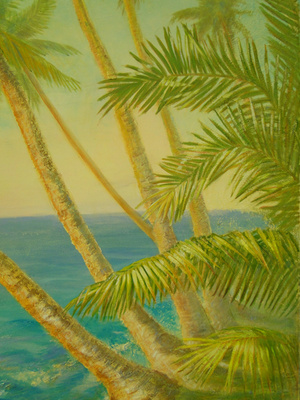 Вы зря не используете в реалистичных изображениях, т.к плановость очень легко можно передать с помощью фактуры и богаче смотрится. В последней моей работе "Золотой Берег" я как раз использовала её на первых планах: пена волн, стволы пальм и песок на переднем плане, получается 3D изображение!!!! А ветки у пальм сделаны объёмно темперой и отлиссерованны акрилом.