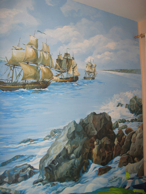 Новый проект - "Морские просторы". С ним получилась целая история... Заказчица долго не могла выбрать эскиз, да, и в связи с изменениями в интерьере по ходу ремонта, пришлось делать много разных вариантов эскизов... Однажды мой сын, наблюдая за процессом ваяния очередной партии эскизов, заключил: "Ну ты мама "напросторила просторов"
