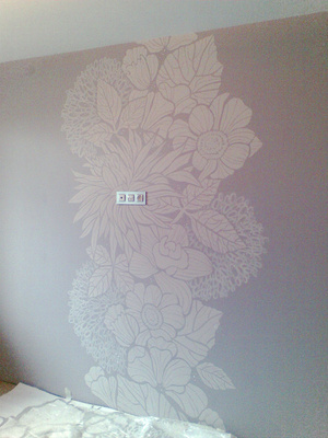 Закончила монохромную роспись в спальне... противоположная стена...