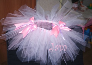 3) надо больше фатина, я купила 2,5 метра при ширине 80 см и при высоте юбочки 30 см, прям хочется в два раза больше фатина, но дома она смотрелась очень пышной, как на ваших фото, а тут фатин будто сник;