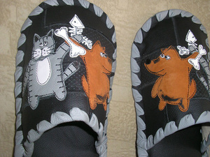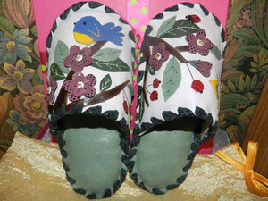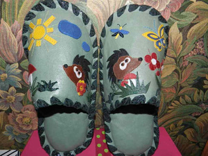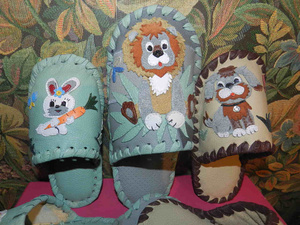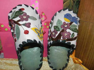 Классные тапки! Мне друзья из Кыргызстана в подарок привезли тапочки из войлока с национальным орнаментом, яркие такие. Только кожа на подошве быстро протерлась. У Вас, наверное, прочнее?