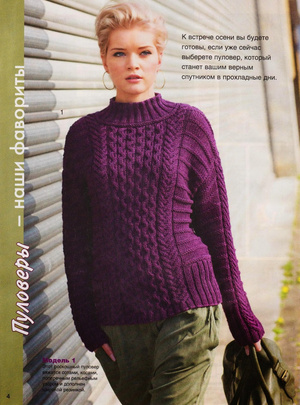 Мне кажется, что если взять серединку от первой модели, а бочки от второй, то должно неплохо в таком цвете смотреться. Сильно сложные косички потеряются скорее от толщины нити, а не от цвета. Хотя надо образец связать и прикинуть, как вообще распределится узор.