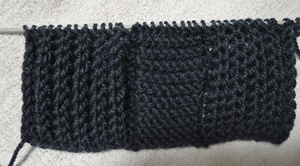 Я попробовала, получается похоже. Только на темной пряже не так хорошо видно, как на фото зеленой пряжей.