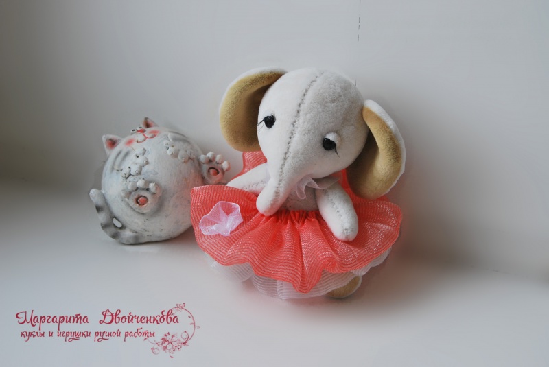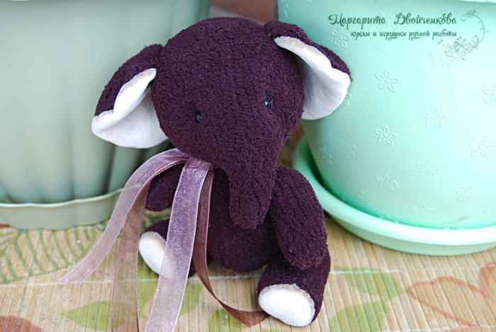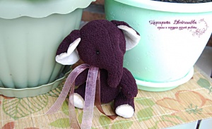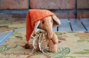 Выполнена слоня из материала для миниатюры, пяточки и внутреннее ушко из миништофа, набита синтепухом, утяжелена металлическим гранулятом, крепления на шплинтах, головушка на двойном. Слегка тонирована художественным маслом. Умеет самостоятельно стоять! Одета в колпачок из флиса с деревянной бусиной, на шейке шебби-ленточка.