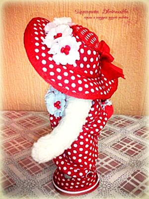 Одета гномочка в штанишки и колпачок из американского хлопка. Всё снимается.