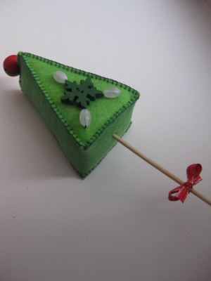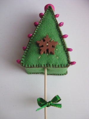 Елочка на палочке. Можно воткнуть в цветочный горшок или снять палочку и просто поставить куда-то. Высота елочки 9см. Цена 220р.