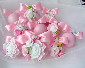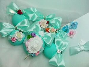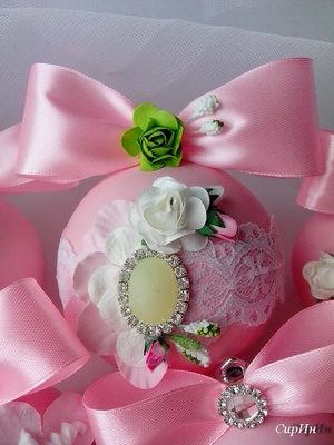 До Нового Года 2 дня. Все заказы выполнены. Очень хочется показать результаты. Мятные шары оказались самыми популярными. Я тоже заболела ими так,что сделала и себе несколько штук на ёлку. А это наборы сделанные на заказ. Один остался в Новосибирске,другой уехал в Псков. Розовый набор тоже будет украшать ёлку далеко отсюда,он отправился в Самару.