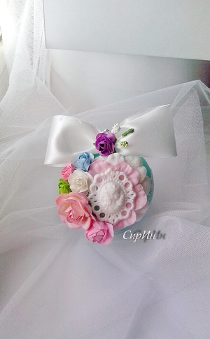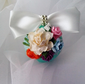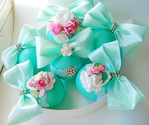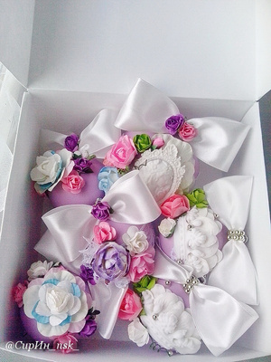 Все шары окрашены вручную. Краситель гипоаллергенный, для детей не опасен. Лепнина выполнена из спец.пластика для декора.Пока,набор состоит из 6 шаров,разных размеров и упакован в обычную коробку. Если увеличится до 12 или 14 шаров,переедет в шляпную коробку.
