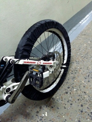 Если кому интересно, можете приобрести у нас велочехлы, они прекрасно защищают чистоту квартиры от пыли и грязи, очень удобный способ хранения и транспортировки в любом помещении, велоноски не препятствуют движению велосипеда по поверхности пола, надеваются и застёгиваются очень легко и быстро