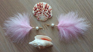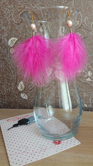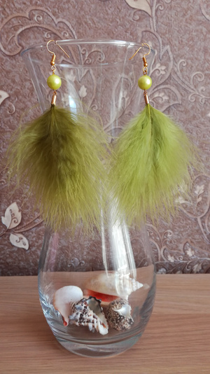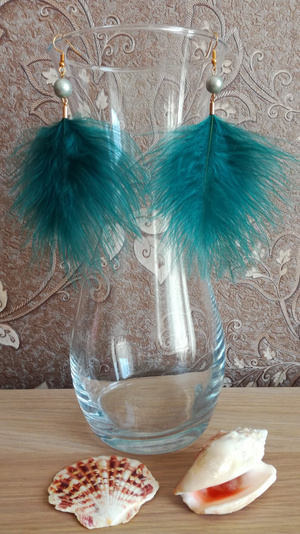 Серьги-перья авторской работы из страусиного пера разных ярких цветов с натуральными камнями (жемчуг, авантюрин)