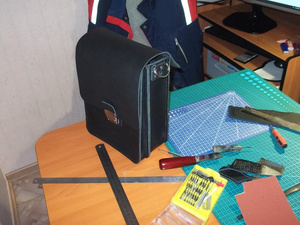 Это моя первая сумка. Она сшита полностью на данный момент времени, осталось только её пропитать и покрасить урезы. Не мог этого сделать, т.к. много времени ушло на подготовку места под швейную машинку, которую приобрёл на прошлой неделе.