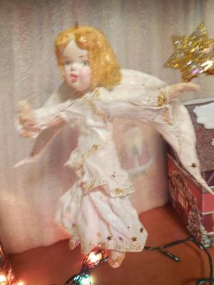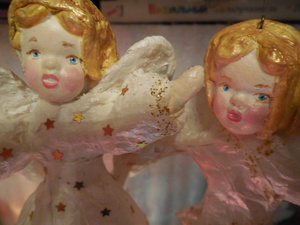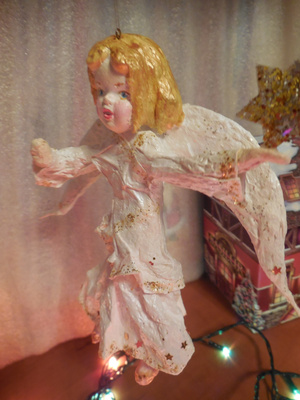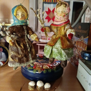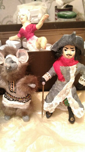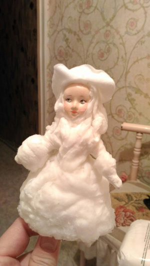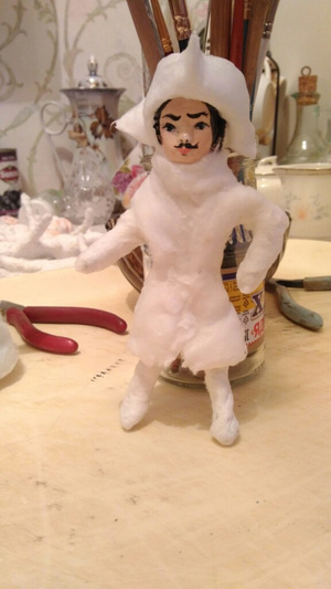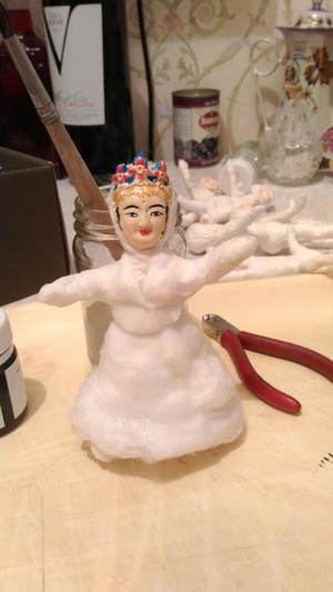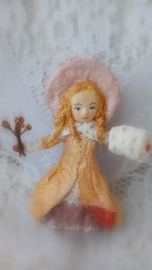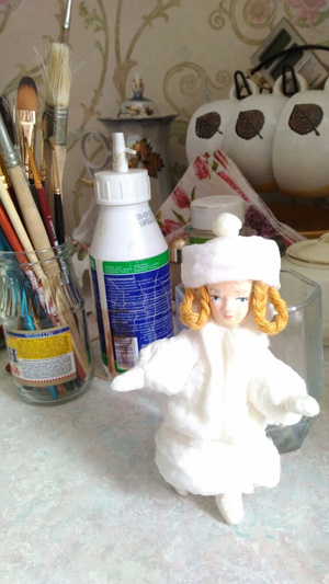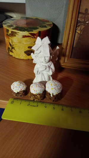 Задумала к Пасхе сделать такие подвесные фигурки.И куличи -да, тоже из ваты:)Осталось сделать и закрепить в руках бдюда с крашеными яйцами.