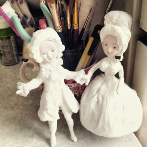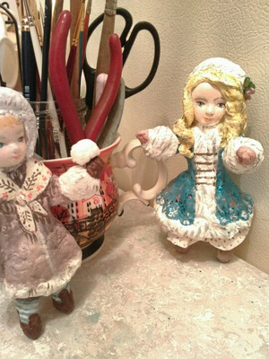 На этапе грунтовки "одетой" куклы частенько встает вопрос- раскрашивать/не раскрашивать.