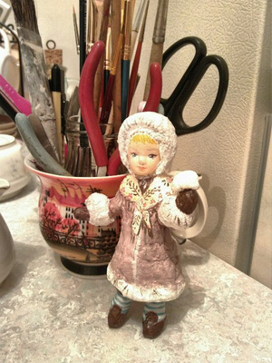 Делаю , что называется, с нулевого цикла.Сама занимаюсь изготовлением молдов(форм для отливки личика игрушки), сама расписываю etc.