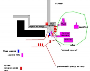К церкви проезд длинной 20 метров, шириной сейчас в 3 авто.Сейчас это подъездные пути к стройке (гимназии) и там постоянно ездит крупная строительная техника. И людей, которые паркуют на подъездных путях машины - регулярно кто-нибудь да находится, довольно много. Потом приезжает какая-нибудь ботономешалка и не может проехать. И весь процесс встает из-за таких вот умников.