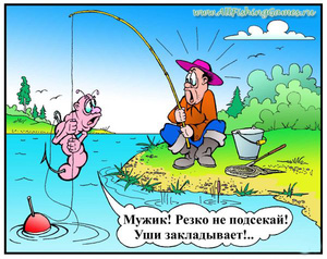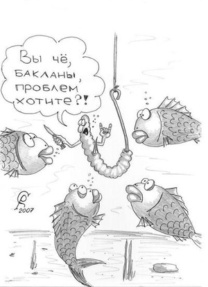 - Вась, да не плюй ты так сильно на червяка! От его пьяного базара потом вся рыба разбегается...