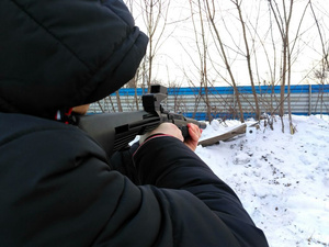 Как только выглянуло весеннее солнышко и малость потеплело, прогулялись по окрестностям, выбрали больмень подходящее место и один баллончик опробовали. Хватило на 60+ шариков. Метров с 5-6 бьёт вполне кучно, и одиночными и очередями. С прикладом само собой удобнее, но и малость тяжелее.