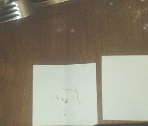 Сделал фотографии в развернутом виде (в диаметре треть миллиметра, в длине сантиметра 2,5-3). Не в рыбе, а уже на бумажке: