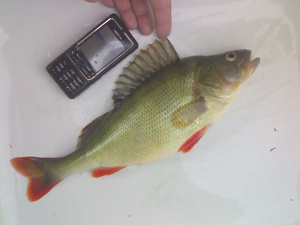 Окунь был примерно такой (на фото тот, которого я поймал):