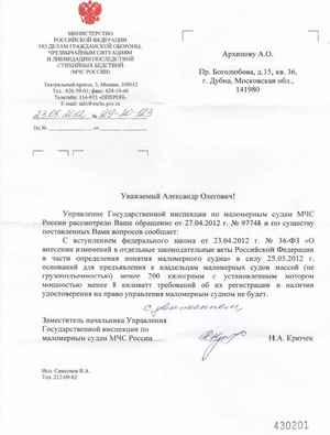 Кстати, лодки с массой (не грузоподъемностью) до 200 кг не регистрируются, а на управление мотором до 10 лс не нужны права.