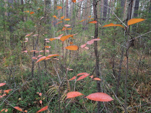 В четверг посмотрел прогноз на выходные и решил закрыть грибной сезон в пятницу.:) Cнова выбрал северо-восточное направление нашей области. Надеялся, что в бору найду немного белых, а в березовых колках по соседству - опят, но надежда на опята не оправдалась - перспективные с виду пни попадались, но, увы, даже следов грибов на них не было. Но эти березовые места мне были незнакомы, заезжал туда просто на разведку на обратном пути.