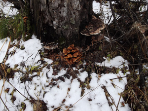 Ездили с женой в караканский бор 2 недели назад. Находили свежезамороженные лисички, опята, пару белых)))