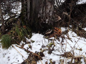 Проехались в выходные по М-52 до Барнаула. В районе Озерков стоит дядька, продает несколько ведер свежих лисичек. Лес в снегу. Может, их как-то в домашних условиях выращивают?