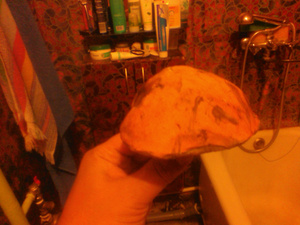Дача совсем рядом, на Золотой горке. А это , к сожалению не боровик, а обычный белый, просто вырос в темном месте.