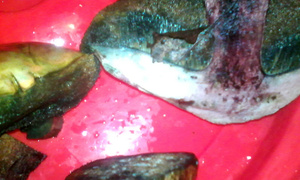 Подскажите что за грибы!!! Первые 4 фото вчера остальные сегодня. При срезе синели или краснели!!!качество конечно не айс, но похоже на белые