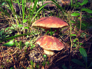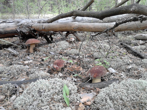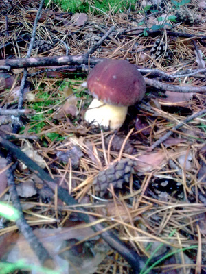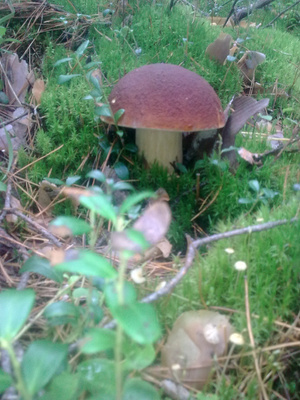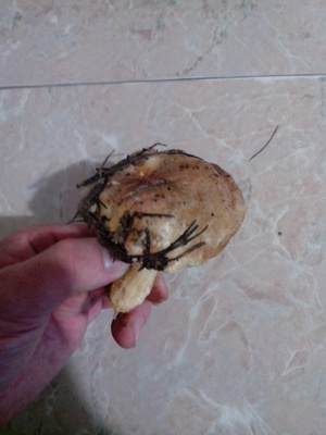 Показать спойлерСначала решили попробовать в одном месте (зеленый трек). В том месте лес был достаточно сырой, много росы. Местами попадалась трава, заросли. Поэтому немного там походив, решили сменить локацию. Находили много растоптанных или срезанных и брошенных грибов (сыроежки, моховики). Второй трек (фиолетовый) показал прям многообещающий пейзаж. Лес практически без травы, немного посуше, много мха (зеленый, белый), как ковер. Мох мягкий, ну т.е. лес не сухой. Оооочень много грибников, но с грустными лицами, сетующими, что грибов ооочень мало. И действительно, у кого один в корзинке, у кого два (про белые). И так пройдя по кольцу, не найдя ничего решили еще куда-нибудь сходить. Уже у машины встретили грибничка, добродушного дядьку. Разговорились, разболтались, познакомились, ему под 60. Набрал полведерка белых. Грибы хорошие крупные. Время уже было около 10 утра. Он сказал, что давно тут, а с грибами - все печально. Мы рассказали о себе, что тут впервые, да и опыта маловато. Вобщем после довольно теплой беседы, он махнул рукой и сказал "Ребят, подвезите, прогуляемся вместе. Я вам покажу одно грибное место. Вообще их не угадаешь! Это рулетка! Сегодня он (гриб) здесь, завтра прошли дожди - он вылез там, где вы вчера ходили и было пусто. Но места знать надо. Надо попробовать вдоль трассы". И действительно (красный трек), только отошли пару метров. Раз, я нашел. Раз, мужичок тот. Ну мы вдохновились с женой и пошли искать. Но рано обрадовались. Мы с мужичком потом разминулись. Я после еще один нашел и жена один. На этом все. Остальное - несколько моховиков, как мне кажется. Но по ним есть вопросы!Показать спойлер
