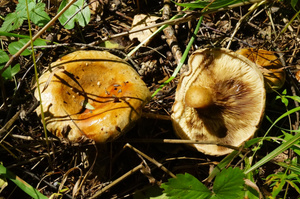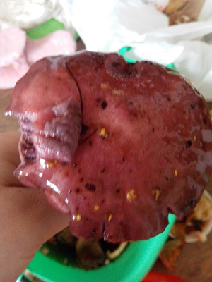 Помогите опознать грибы. Гриб №4 - масленок? Гриб №5 - этот вообще меня пугает. После помывки (или уже раньше?) снизу губка потемнела. Стала темная, с сине-зеленым оттенком.