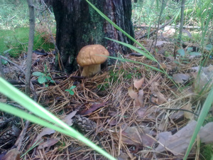 Вторая попытка состоялась 15.08. Матч-реванш. Отвез жену на работу и сразу же рванул за грибами. На месте был около 9 утра. Результат был получше, но все равно приметил, что уже здесь прошерстили. Набрал немного подберезовиков, один подосиновик, половина ведерка лисичек. Созерцал пеньки местами. Снова пообщавшись с местными за покупкой небольшого ведерка лисичек, осознал, что выражение с самого утра, это далеко не 9 утра![]()