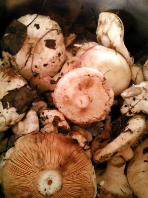 Сегодня по наставлению знакомых поехали в сторону Морозово(что за Академом).....поехали, конечно, почти ради интереса.....уже в 15-00.....за три часа в паре околков набрали четыре пакета-майки...в основном груздь.Про груздь, мы привыкли его собирать в сосняке, а тут березки, и он был какой-то другой, с махрушечкой и почти негрязный....Для сравнения, до этого вымачивала сутки и все-равно кое-как от земли очистила.....Но то что это груздь-это факт(пахнет именно груздем)....Грибов там много..мы просто не успели дальше поехать...ходили вокруг машины(машина седан была оставлена на дороге).....у тех кто очень разбирается хотела уточнить, было собрано некоторое количество других грибов , похожие на волнушек.....но я их в таких масштабах с детства не видела....фото не могу выгрузить...пишет сильно большой размер....вроде волнушки, такие же как грузди только розоватые и почти все полые ножки....и с бахромой внутри...прочитала, что их как и грузди можно засолить.....Чуть позже попробую поколдовать над фотками.....