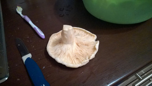 С грибами та же история. Например, тот огромный некультяпистый белый, что на моем последнем фото - ножка ушла полностью в еду, а шляпка в мусор.