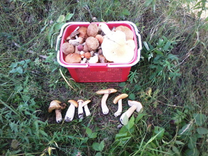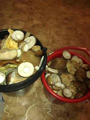 еле еле 8 литровое ведерко белого с грядок, полведра лисичек, два ведра сухого груздя