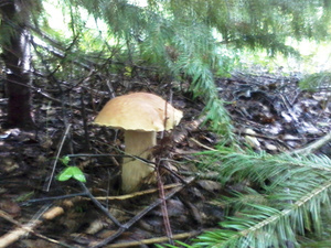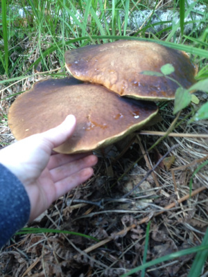 Мы заглянули на 15 минут в лес, наугад: нашли немного маслят (хватило на большую сковородку пожарить), пару груздей и пару белых.