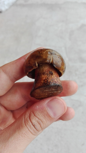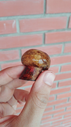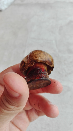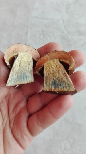 Ребят подскажите, что за гриб. Набрали в березах. Цвет зелено-красный, на срезе быстро синеет. По форме - напоминает подберезовик.